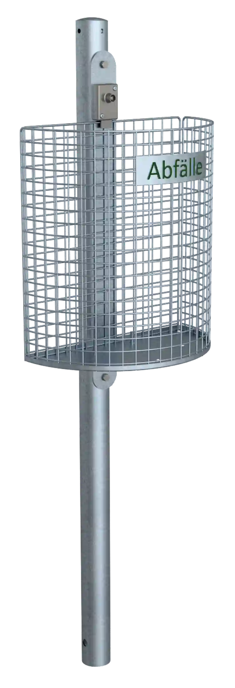 Der Abfallbehälter wird über eine Befestigungsschiene sicher montiert, wodurch eine stabile Platzierung und gleichzeitig eine einfache Entleerung gewährleistet sind. Dank seiner Drahtkonstruktion ist er besonders widerstandsfähig gegenüber Witterungseinflüssen und Vandalismus.
