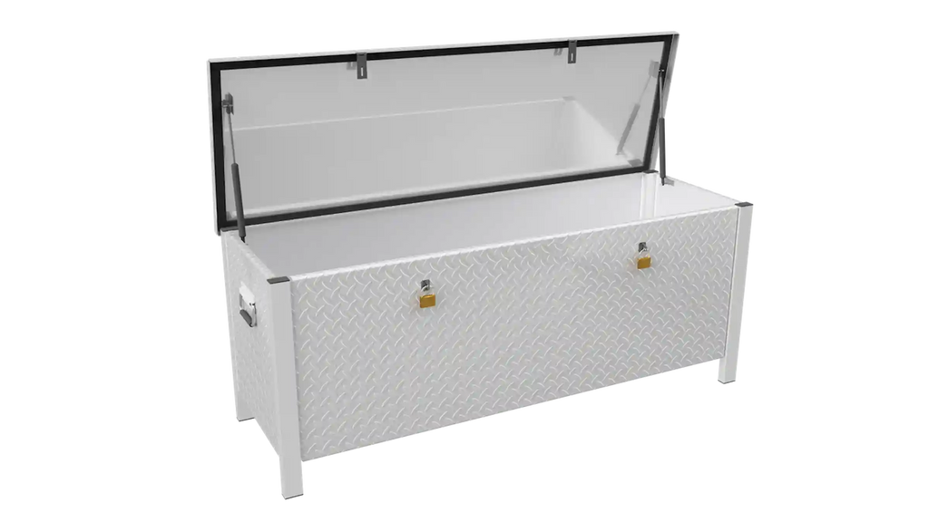 Die Alu-Transportbox überzeugt durch ihre widerstandsfähige Konstruktion aus Aluminium und eignet sich ideal zum sicheren Lagern und Transportieren von Werkzeugen, Geräten und Materialien. Der Deckel wird durch eine abschließbare Gasdruckfeder unterstützt, die ein komfortables Öffnen und Schließen ermöglicht. Zudem verfügt die Box über universelle Befestigungsmöglichkeiten für maximale Flexibilität beim Transport.