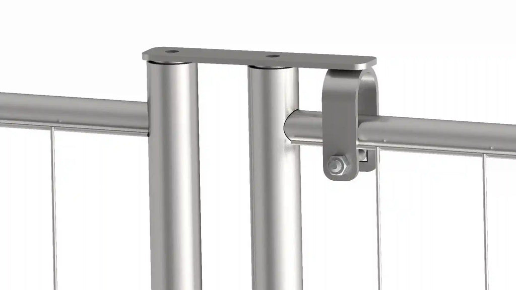 Dieses Drehgelenk ist robust und langlebig, sodass es den täglichen Anforderungen auf Baustellen standhält. Es sorgt für eine stabile und bewegliche Verbindung der Zaunelemente, was die Handhabung und Anpassung des Zauns vereinfacht.