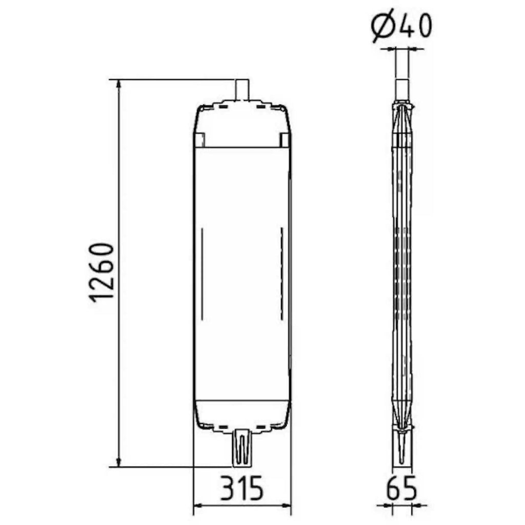 Unterer Stutzen: 60 × 60 mm