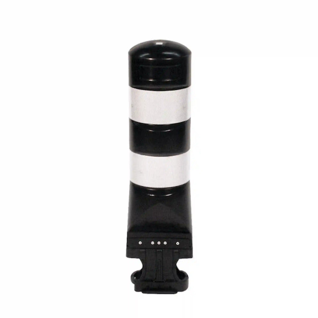 Ausgestattet mit einem flexiblen Gummifuß reagiert der Leitboy Poller bei Berührungen oder leichten Aufprallen nachgiebig und erhöht dadurch die Sicherheit für Verkehrsteilnehmer. Zwei reflektierende Folienstreifen in Weiß oder Rot sorgen für eine klare visuelle Wahrnehmung.