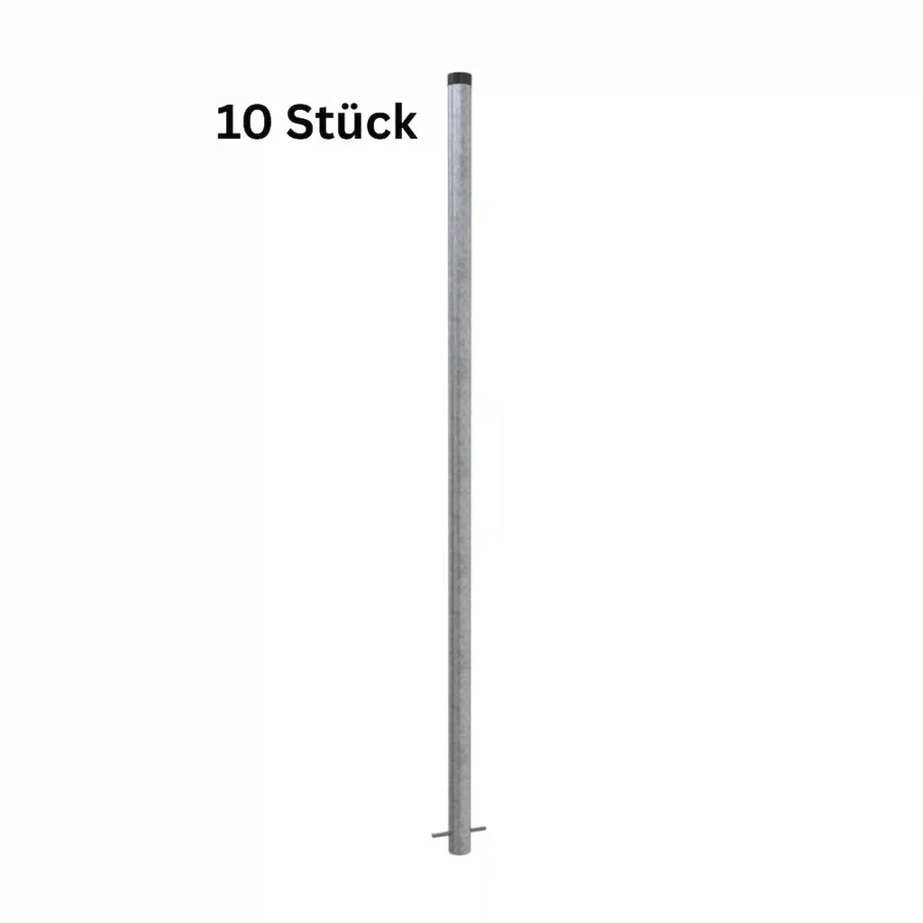 Dieses Paket enthält 10 stabile Rohrpfosten aus Stahl zur Aufstellung von Verkehrsschildern. Jeder Pfosten ist mit einem Erdanker zum sicheren Einbetonieren und einer Rohrkappe als Abschluss ausgestattet. So sind die Schilder fest verankert und gegen Regen geschützt.