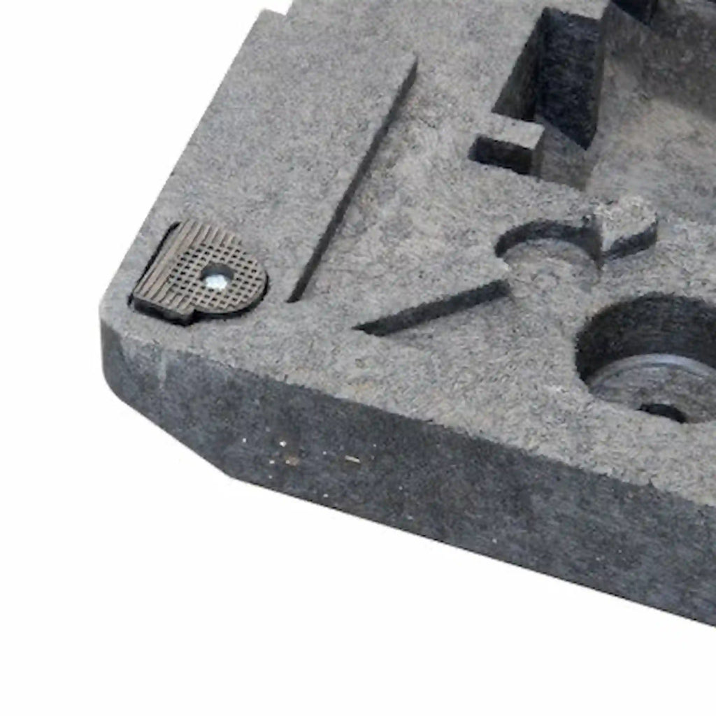 Dank ihrer besonders flachen und breiten Geometrie verfügt diese Fußplatte über eine außergewöhnlich große Auflagefläche. In Kombination mit dem integrierten Anti-Rutsch-System garantiert sie eine überragende Bodenhaftung auf Asphalt, Schotter oder Beton. Selbst bei starken Windlasten oder Druckwellen durch vorbeifahrenden Schwerlastverkehr bleibt Ihre Absperrung sicher und stabil an ihrem Platz.