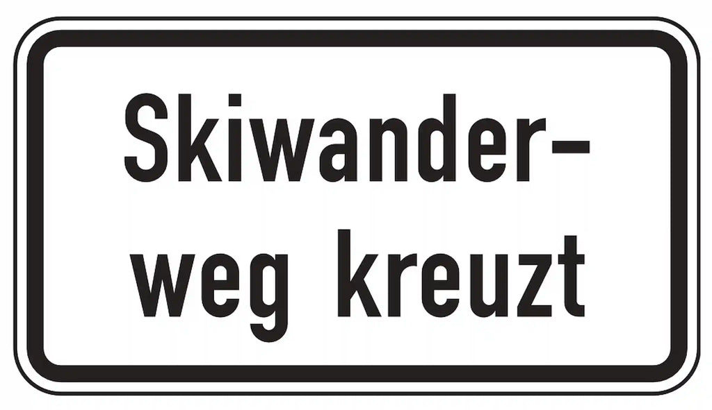 Das Zusatzzeichen "Skiwanderweg kreuzt" (VZ 1007-56) ist für eine klare Informationsübermittlung im Straßenverkehr konzipiert. Es warnt vor Skiwanderern und trägt maßgeblich zur Erhöhung der Verkehrssicherheit in den Wintermonaten bei.