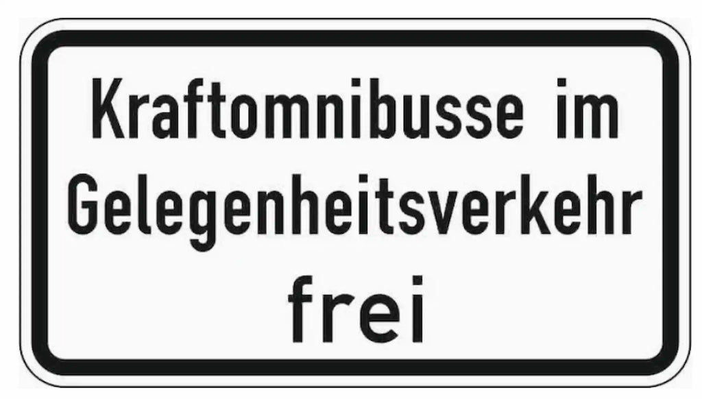 Das Zusatzzeichen VZ 1026-31"Kraftomnibusse mit Gelegenheitsverkehr frei" gewährleistet, dass Busse spezifische Strecken problemlos nutzen können, indem es klar unter Verbotsschildern platziert wird und damit zur reibungslosen Gestaltung des Verkehrs beiträgt.
