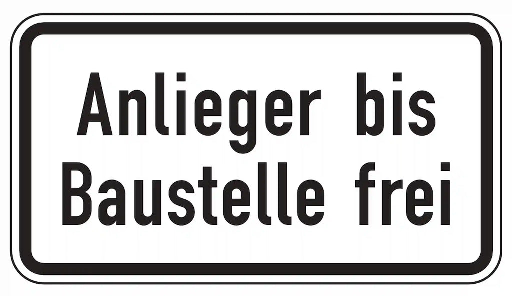 Das Zeichen "Anlieger bis Baustelle frei" dient als Verbindung zwischen Verkehrsleitung und Anliegern zur Aufrechterhaltung der Verkehrssicherheit und begrenzt den Durchgangsverkehr während Baumaßnahmen.