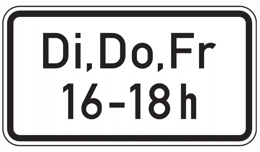 Flexibles Zusatzzeichen: Verkehrszeichen VZ 1042-34 "Zeitliche Beschränkung"