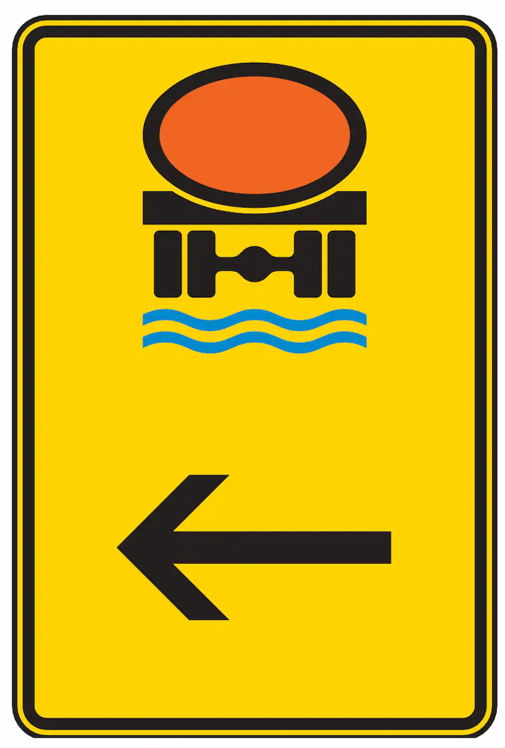 Verkehrszeichen VZ 422-14 "Wegweiser für Fahrzeuge mit wassergefährdender Ladung, hier links" – Wegweisend für sicheren Transport