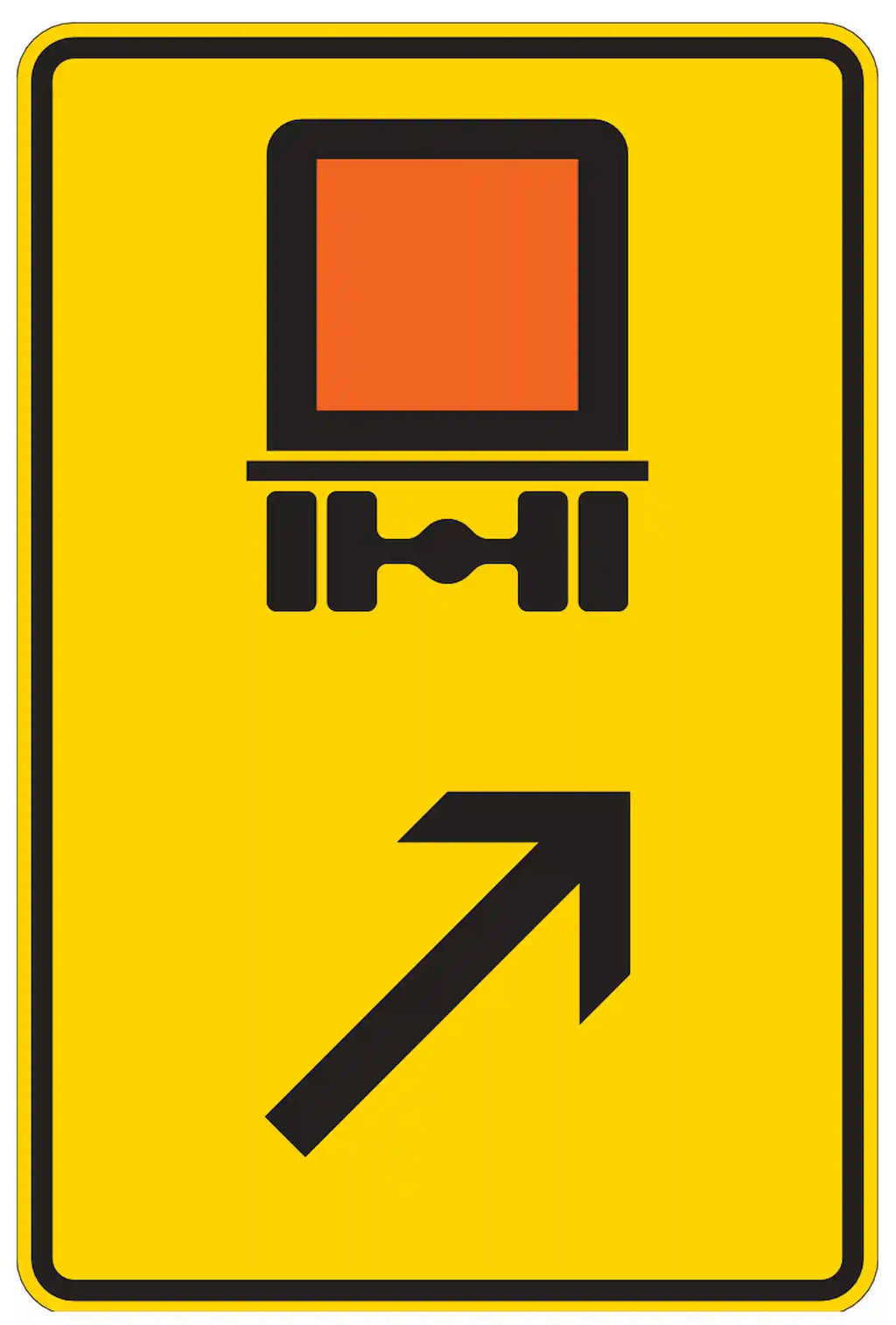 Das Richtzeichen VZ 422-23 ist ein fundamentales Element für eine sichere und präzise Steuerung des Verkehrsflusses. Dieses Schild ist speziell für kennzeichnungspflichtige Fahrzeuge mit gefährlichen Gütern und weist diese an, sich rechts einzuordnen, um gefahrlos an potenziellen Gefahrenstellen vorbeizuführen. Somit ist es ein entscheidender Faktor zur Erhöhung der Verkehrssicherheit.