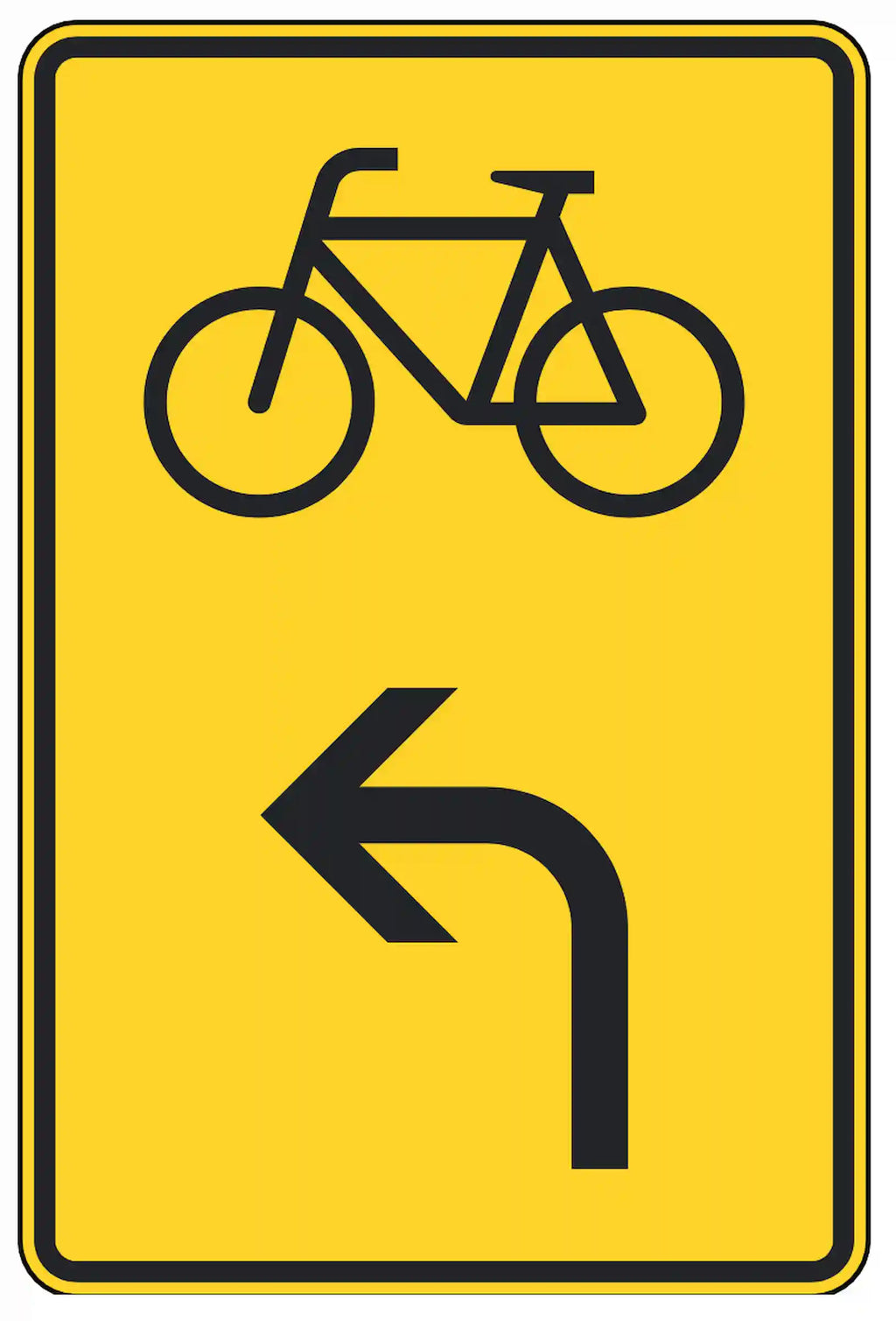 Verkehrszeichen VZ 442-13 "Vorwegweiser für Radverkehr, linksweisend" - Sichere Führung des Radverkehrs