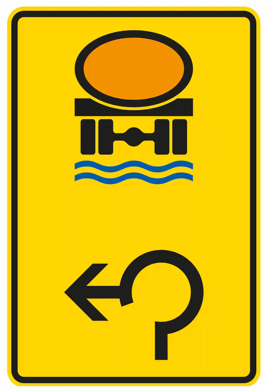 Das Richtzeichen Verkehrszeichen 442-16 gewährleistet eine zuverlässige und präzise Verkehrsführung speziell für Fahrzeuge mit wassergefährdender Ladung. Es dient der sicheren Umleitung im Rahmen von Baumaßnahmen und unterstützt die unfallfreie Navigation durch Verkehrsbereiche, die besonderer Aufmerksamkeit bedürfen.