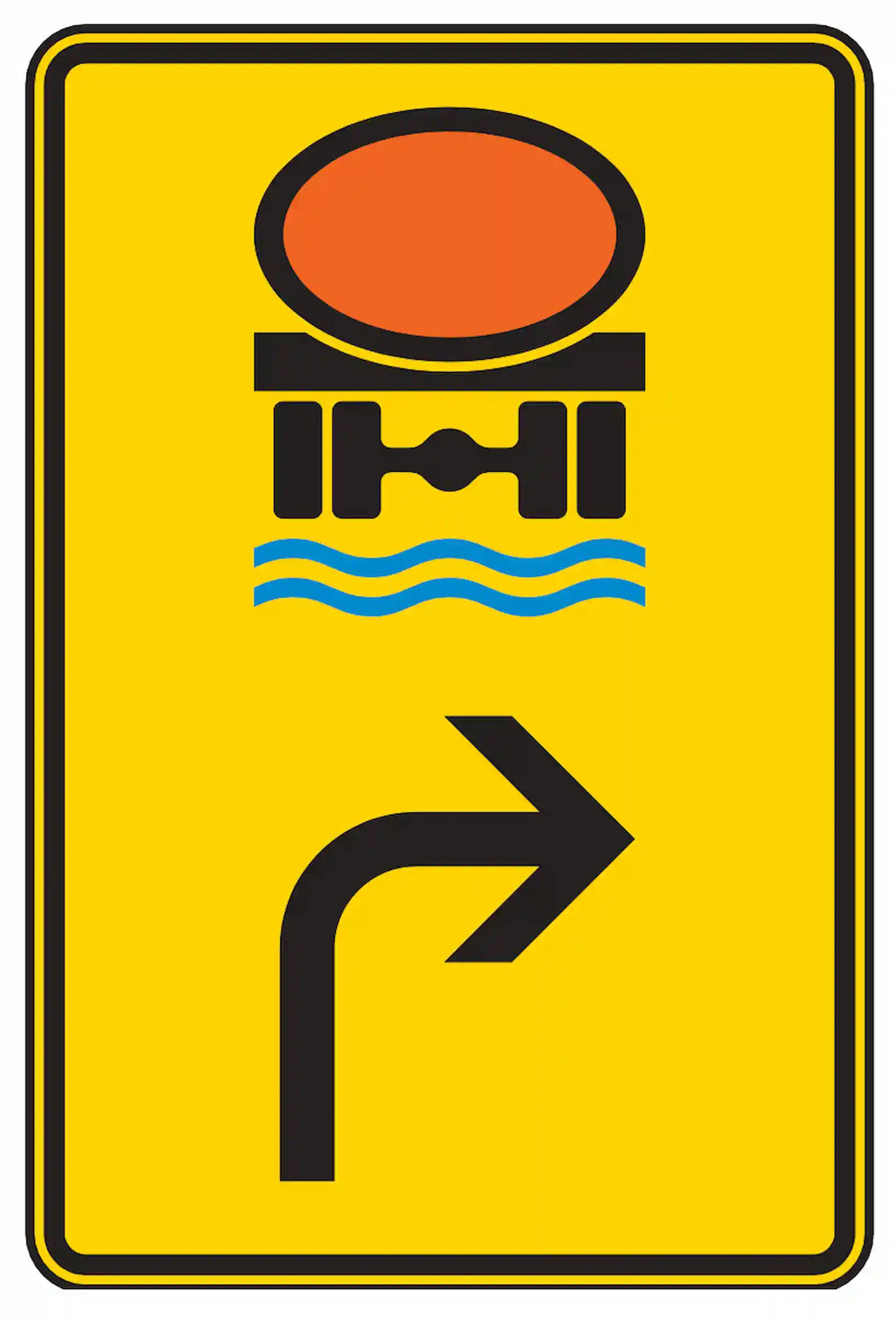 Verkehrszeichen VZ 442-22 "Vorwegweiser für Fahrzeuge mit wassergefährdender Ladung, rechtsweisend" – Unentbehrliches Richtzeichen für besondere Verkehrslagen