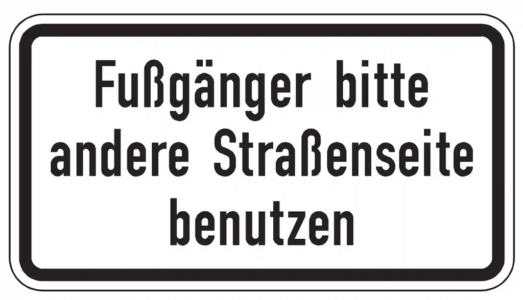 Verkehrszeichen 2140 Zusatzzeichen "Fußgänger bitte andere Straßenseite benutzen" – Gewährleisten Sie mehr Sicherheit
