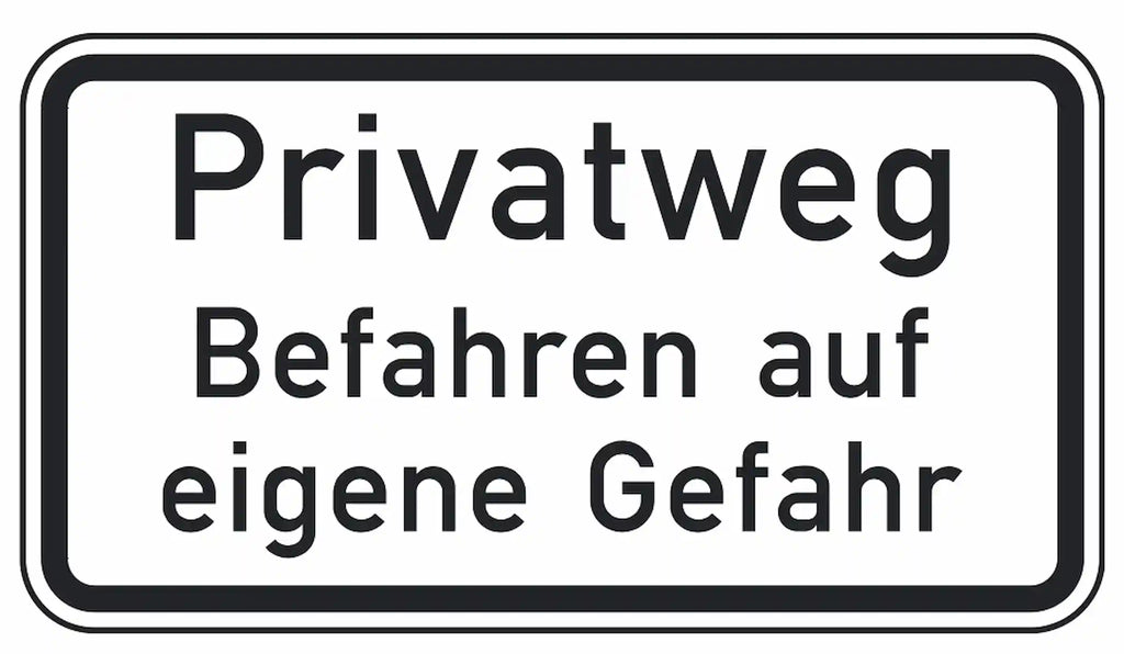 Verkehrszeichen 2823 "Privatweg - Befahren auf eigene Gefahr"