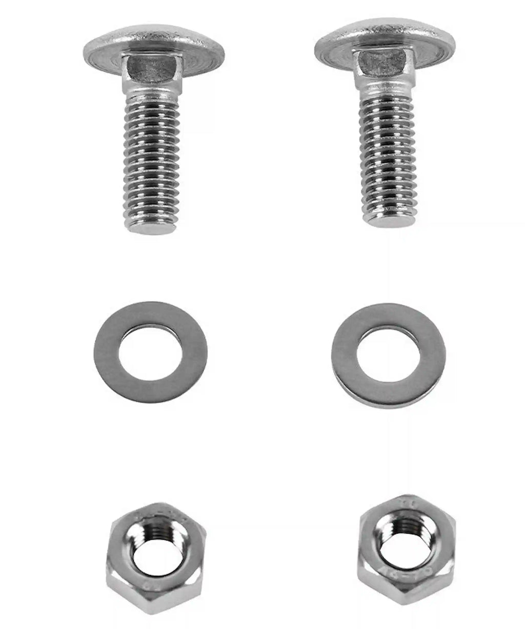 - Komponenten: Im Lieferumfang sind 2 Flachrundschrauben (M8x20), 2 Sechskantmuttern (M8) und 2 Unterlegscheiben (M8) enthalten